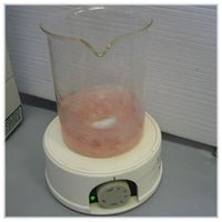 6. Add a stir bar to the beaker, turn on the stir plate and place the pH electrode in the sample. Wait for the ready light to come on before recording the pH value. |