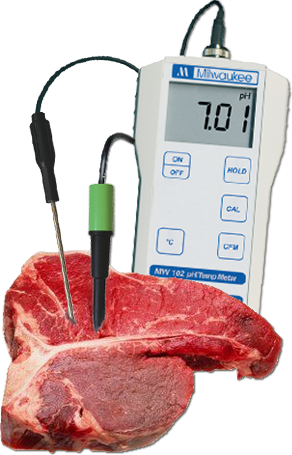 The pH changes occurring in a carcass during the first 24 h after slaughter are important for the quality of the final meat or meat products. Protein denaturation will occur if pH falls to too low a level or if a relatively low pH sets in at a time after slaughter where the carcass temperature is still high. This will result in meat with poor water holding capacity and in extreme cases in meat that is PSE. pH is measured electrochemically using either glass or solid state (IS-FET) electrodes. However, electrochemically based methods are slow to use and do not offer good precision on unhomogenized meat. |